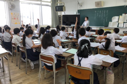 元気に手を挙げた児童が、気持ちを込めて読みます。