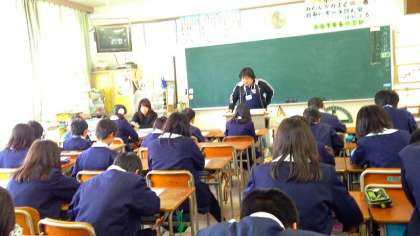 3月5日(木)に梅香中学校の3人の数学の先生が、小中連携の取り組みとして本校に来られ、算数(数学)の出前授業をしてくださいました。授業の前半は、小学校と中学校の違いについて生活面・学習面・クラブ活動などについて詳しくお話をしてくださいました。後半は、工夫して計算をする問題をいくつか出題されました。