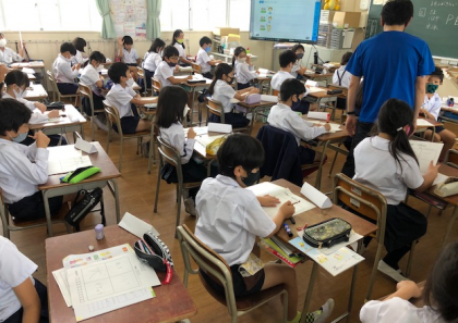4年3組は英語の学習です。