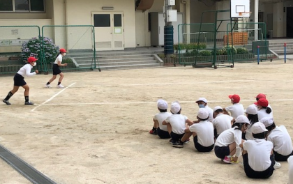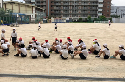 通常授業が再開した今日の1時間目。6年1組は運動場で体育です。