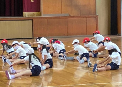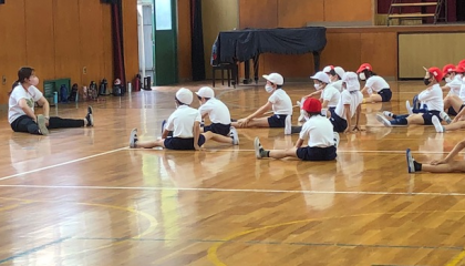 久しぶりの体育の時間。先生から、次、どんなことしたか覚えてますか?と尋ねられた子どもたちでしたが、ちゃんとわかっていたようです。