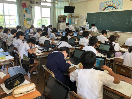 各自の机上には学習用端末があり、漢字を調べているようです。