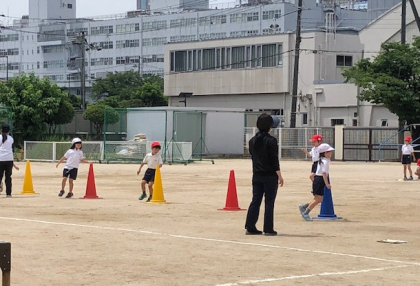 コーンを目指して、行って帰ってくるのですが、さて今日は、どんな活動でしょう。
