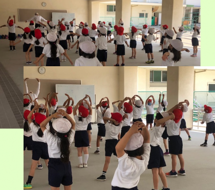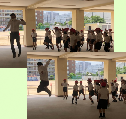 1曲で終わらず次、その次と曲目が変わり、動きも大胆に、教頭先生も子どもたちもノリノリでした。
