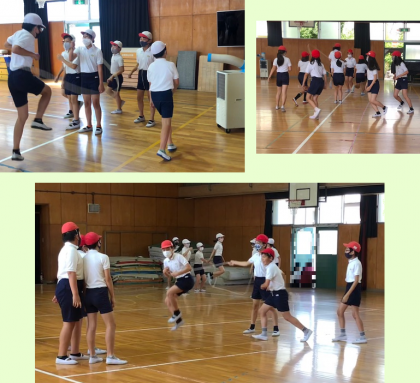 5時間目、体育館からリズミカルな音楽が聞こえてきます。6年4組が、なわとびを行うのに、かけている音楽でした。