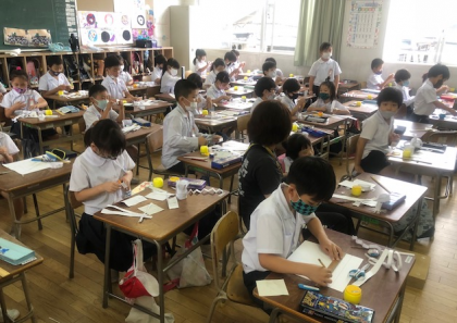 2年2組では、3・4時間目が続けて図工の時間でした。