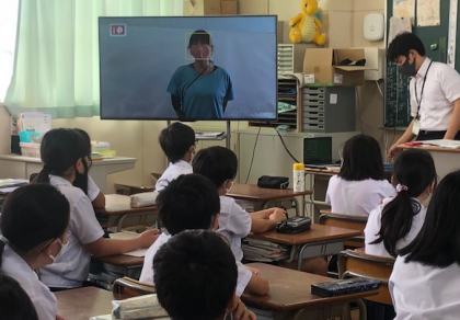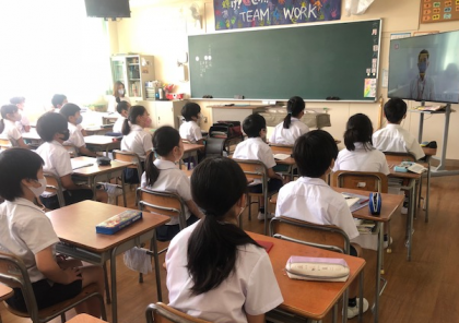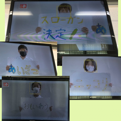 月曜の朝です。今日は放送で児童朝会をしました。校長先生のお話のあと、児童会の子どもたちが、今年度のスローガンを発表しました。