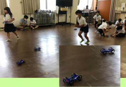 早くに組み立てた子どもたちが早速動かしています。まだの子どもたちは、それを横目に、ちょっぴり気持ちが急きながら?頑張って組み立てていました。