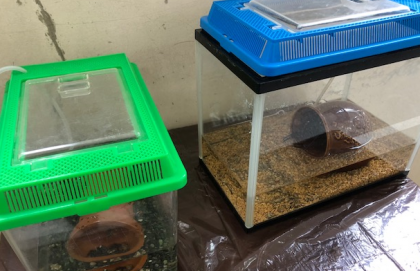 意見は集約され、3組さんの2匹のザリガニは命名されましたが、そんなことを知る由もなく、廊下に置かれた二つの水槽の中で、ザリガニはゆーっくりゆーったり動いていました。