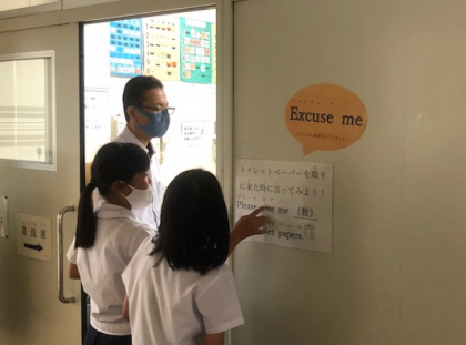 その頃から、職員室内にいる先生も、「英語で言ってみて」とトイレットペーパーを取りに来る子どもたちに投げかけるようになりました。
