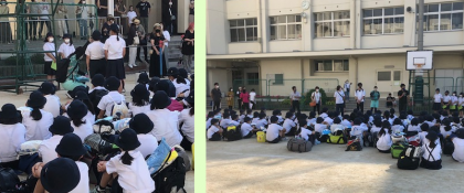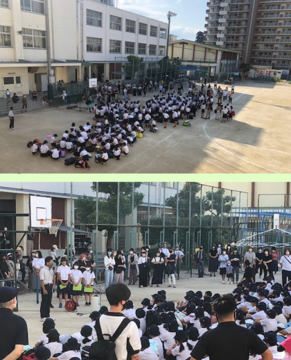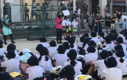 さわやかに晴れ渡った今日の朝早く、運動場に子どもたちが集合しました。