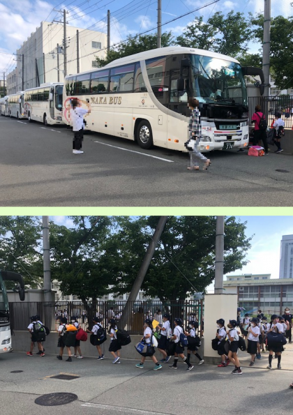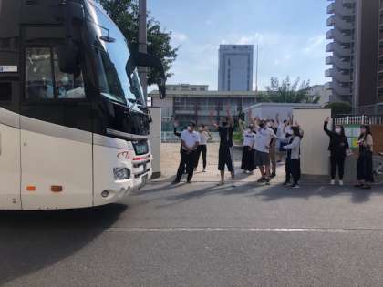 どうぞ安全に、元気に。願いを込めて、職員も出発するバスに大きく手を振って見送りました。