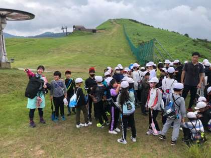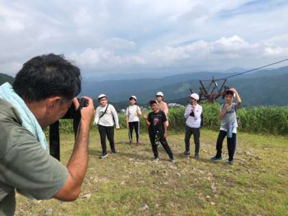 山登りは、けっこうキツイです。途中一休みして、塩飴の補給です。