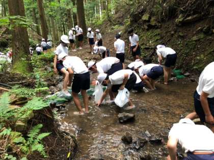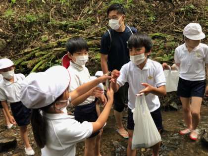 林間学習 魚つかみ