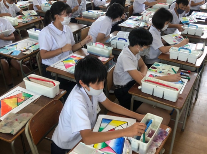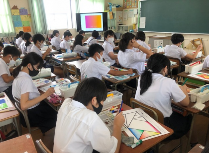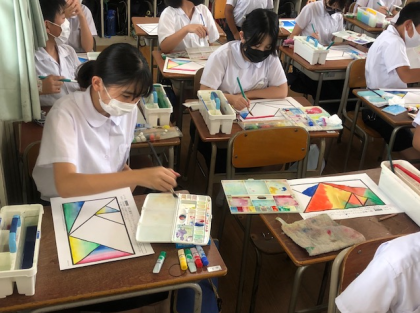 6年3組の6時間目。子どもたちの机上にある幾何学模様が目に飛び込んできました。