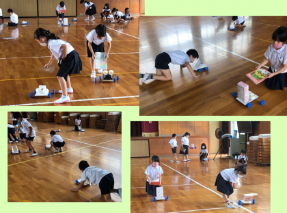 4時間目の体育館です。2年1組の子どもたちが一生懸命取り組んでいます。