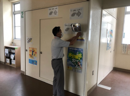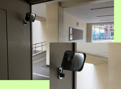 そこで、子どもたちが出合い頭にぶつからないように、要所にカーブミラーを取り付けました。これで、痛い思いをしないで済みそうです。