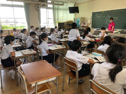 4時間目。5年1組の教室です。
