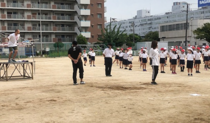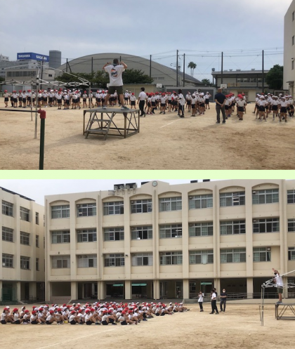 6時間目。4年生が運動場に集まっています。