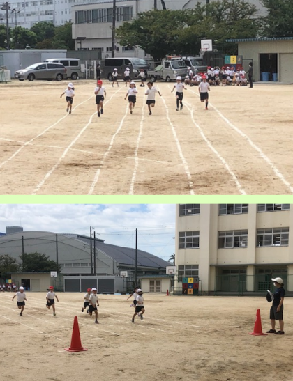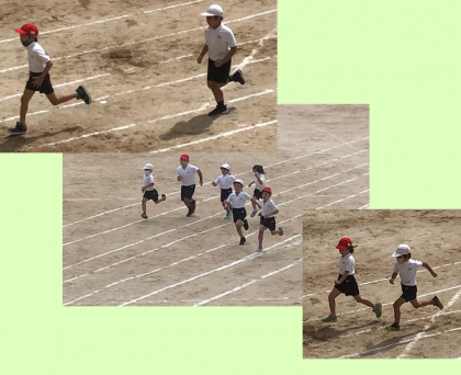 1学期に初めてかけっこした時と比べ、背丈が大きくなって、ずいぶんお兄さん、お姉さんになったなと感じる走りを見せてくれました。