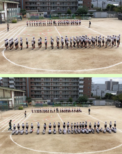 4時間目の運動場では、4年生が団体競技の練習をしていました。