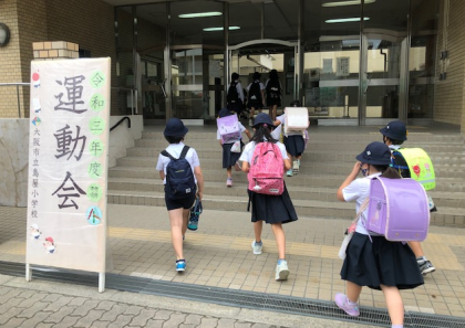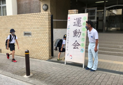 観客は自分たちだけ、2学年ずつ行うなど、いつもの体ではありません。子どもたちも標準服で登校して教室で着替えます。