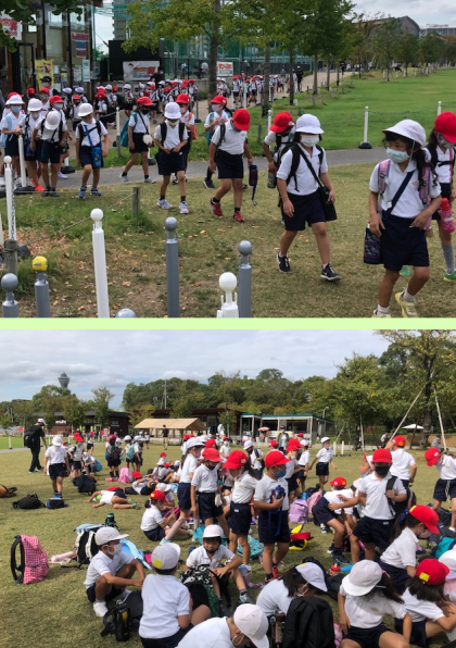 子どもたちは、「てんしば」でお茶休憩をして、帰路につきました。