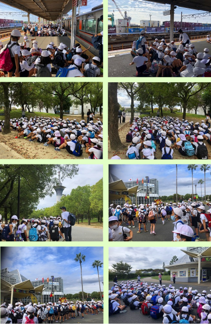 今日は3年生が秋の遠足に出発です。曇り空を心配しましたが、どうやら雨も降らない様子。子どもたちは、JR線を乗り継ぎ、京橋で下車。そこからは大阪メトロに乗り換え、「鶴見緑地」駅まで行きました。目的地は徒歩すぐの「花博記念公園鶴見緑地」です。