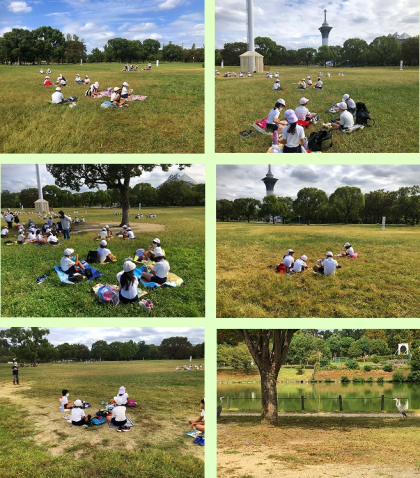 子どもたちは、広ーい芝生の上で、お弁当を広げました。