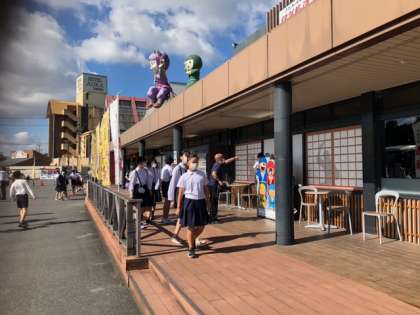 9時40分、伊賀上野でトイレ休憩です。みんな、テンション高めで、他の学校も多くいました。