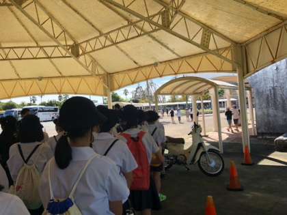 みんな、ワクワクが隠せない様子です。大変多くの学校が来ていて、待ち時間が心配です。