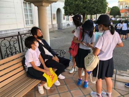 戻った子どもたちは、パルケエスパーニャで楽しかったことを先生や友だちに報告し合っていました。