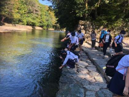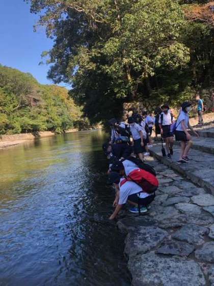 ?五十鈴川の水を触りました。冷たくて、魚の姿もありました。