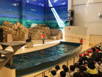 アシカのショーもありました。ジャンプしてフリスビーをキャッチしたり、バスケットのシュートを決めたりと、身体能力の高さに、みんな驚いた様子でした。