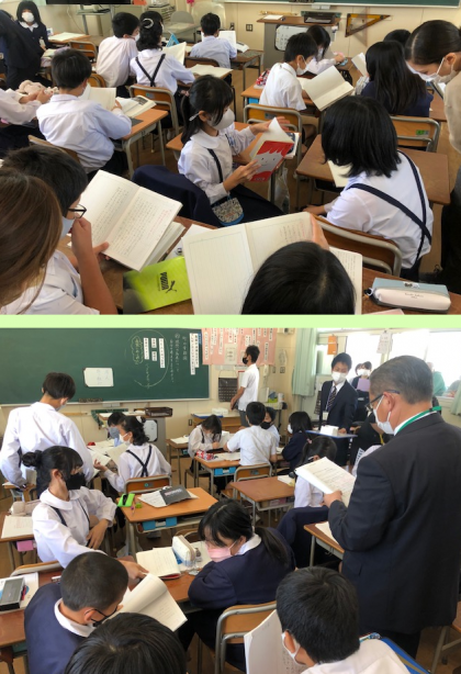 人と人とのつながりを考えて、主体的で継続的なものを、未来のイメージをえがき、自分の考えをまとめた子どもたち。ノートに書き、ペアやグループで交流し、最後は各班の代表が全体に向け考えを発表しました。