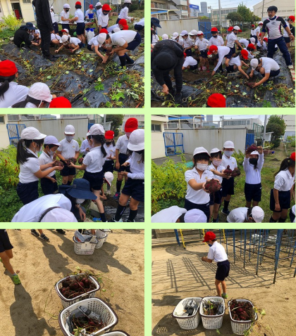 3時間目。2年生の子どもたちが、1学期に植えたサツマイモの収穫をしました。