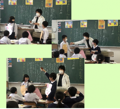 子どもたちは、前に出て、うさぎやきつねになりきって、自分の思うセリフを言います。