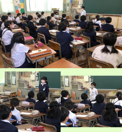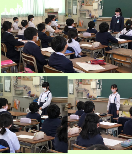 6時間目の総合の時間。4年1組は、子どもたちが、国語の「聞いてほしいな、心に残っている出来事」の時間に学んだことをふまえ、自分たちが「心に残っている出来事」について話を組み立て、みんなの前で発表する時間を持ちました。