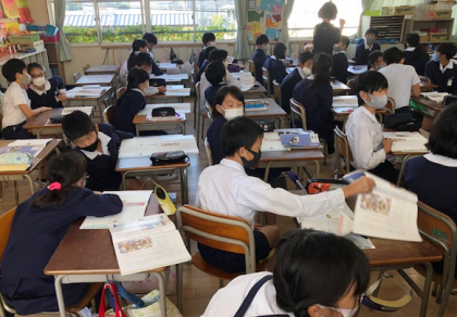 1時間目。5年1組は道徳の学習です。