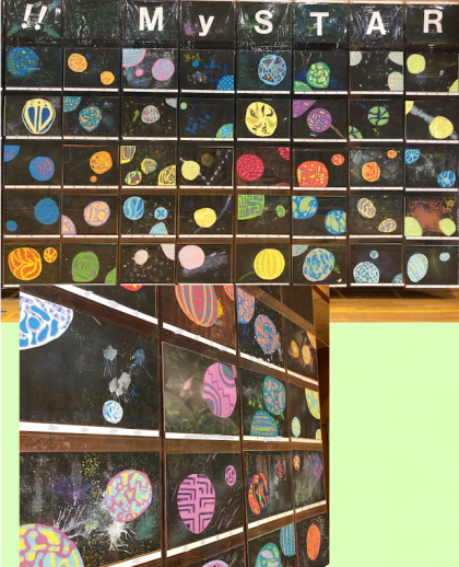 4年生の作品は、「輝け! 魅せろ! My Star!!」と題した平面作品です。