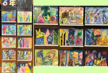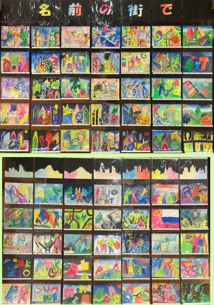 6年生の作品は、「名前の町で」と題した平面作品です。