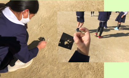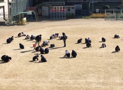 4時間目。運動場に子どもたちが散らばって、じっとうずくまっています。