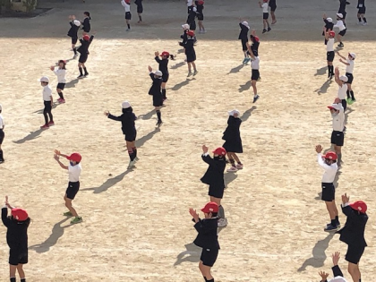2時間目。運動場には2年生の子どもたちが広がっています。