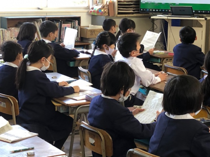 3時間目。1年3組の子どもたちが、楽譜を持って合唱です。