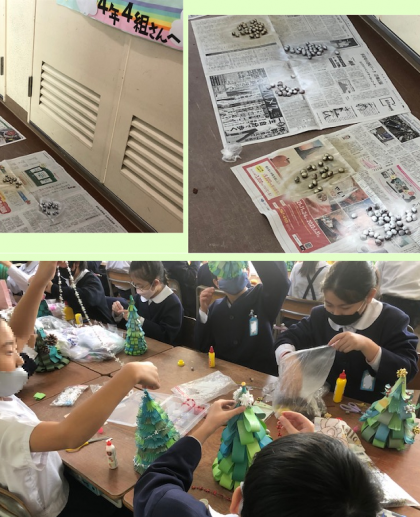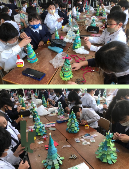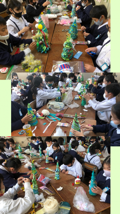 自分だけのクリスマスツリー。いっぱいいっぱい自分の好きなもので飾る子どもたちの目は、輝いていました。