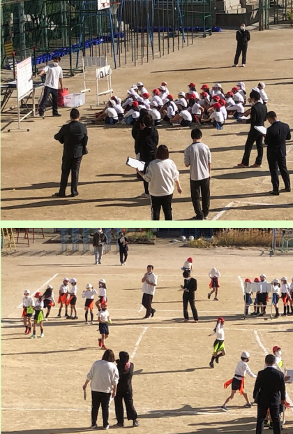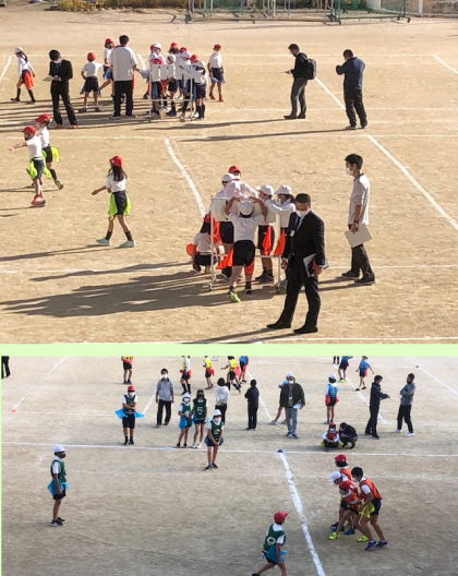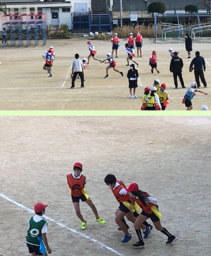 3年4組の子どもたちが5時間目、6年2組の子どもたちが6時間目、外部からの先生たちにも、フラッグフットボールをする様子を見ていただきました。