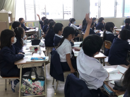 先生に投げかけられ、手を挙げて応える子どもたちです。