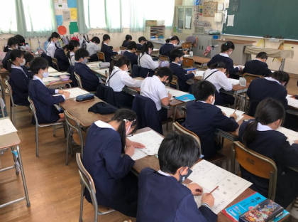 5時間目の4年1組です。静かな教室では、漢字のテストが行われていました。