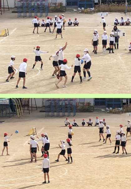 4時間目。4年3組の子どもたちが運動場で活動です。