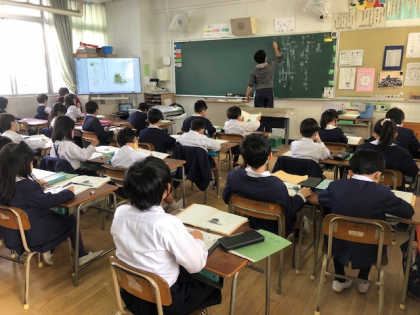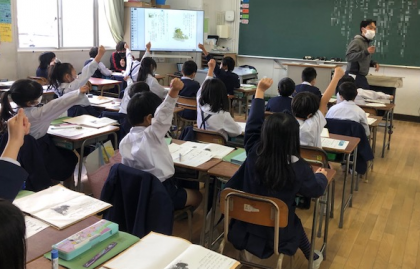 子どもたちは、元気よく手を挙げ、しっかり学習していました。
